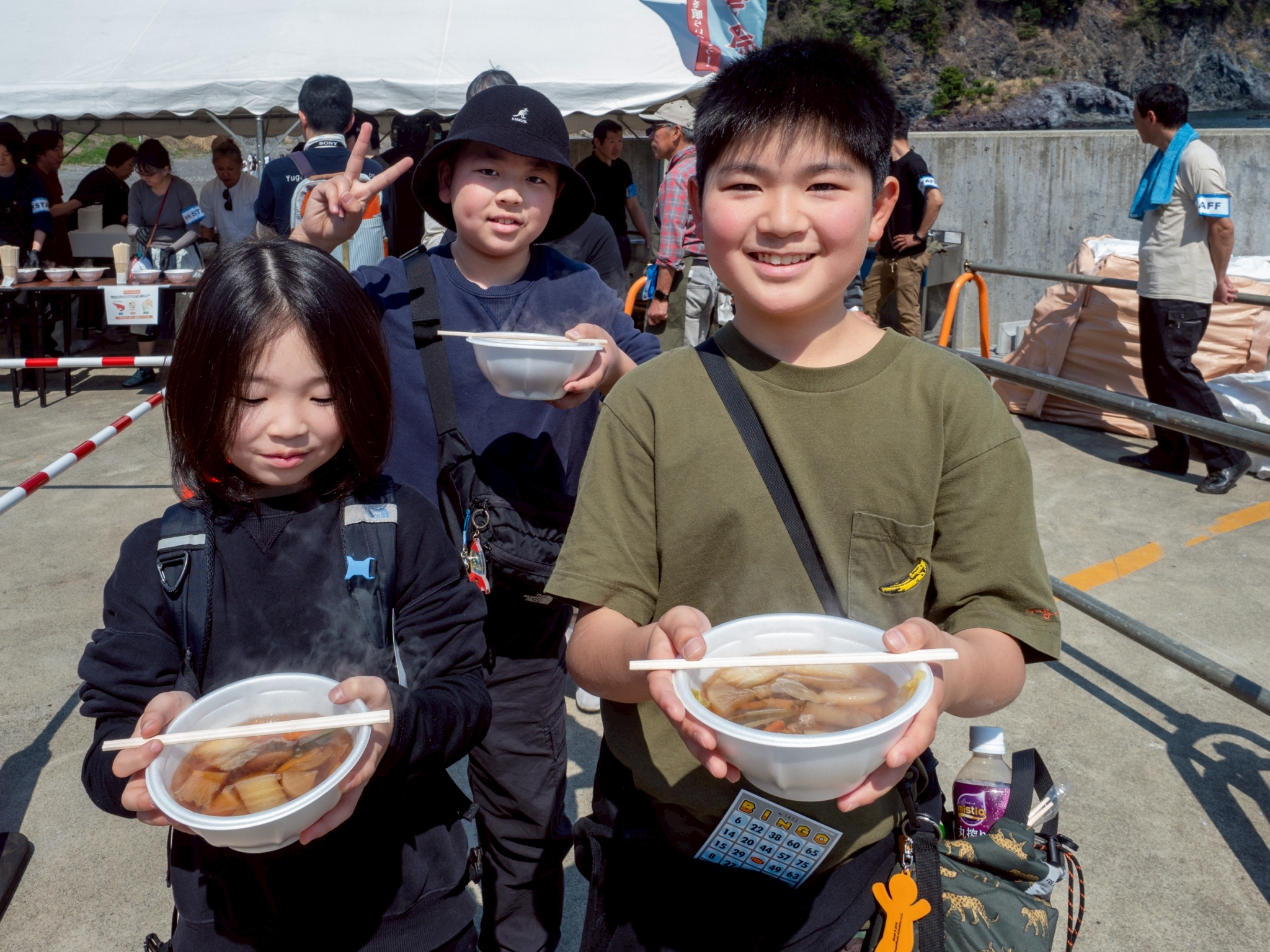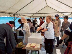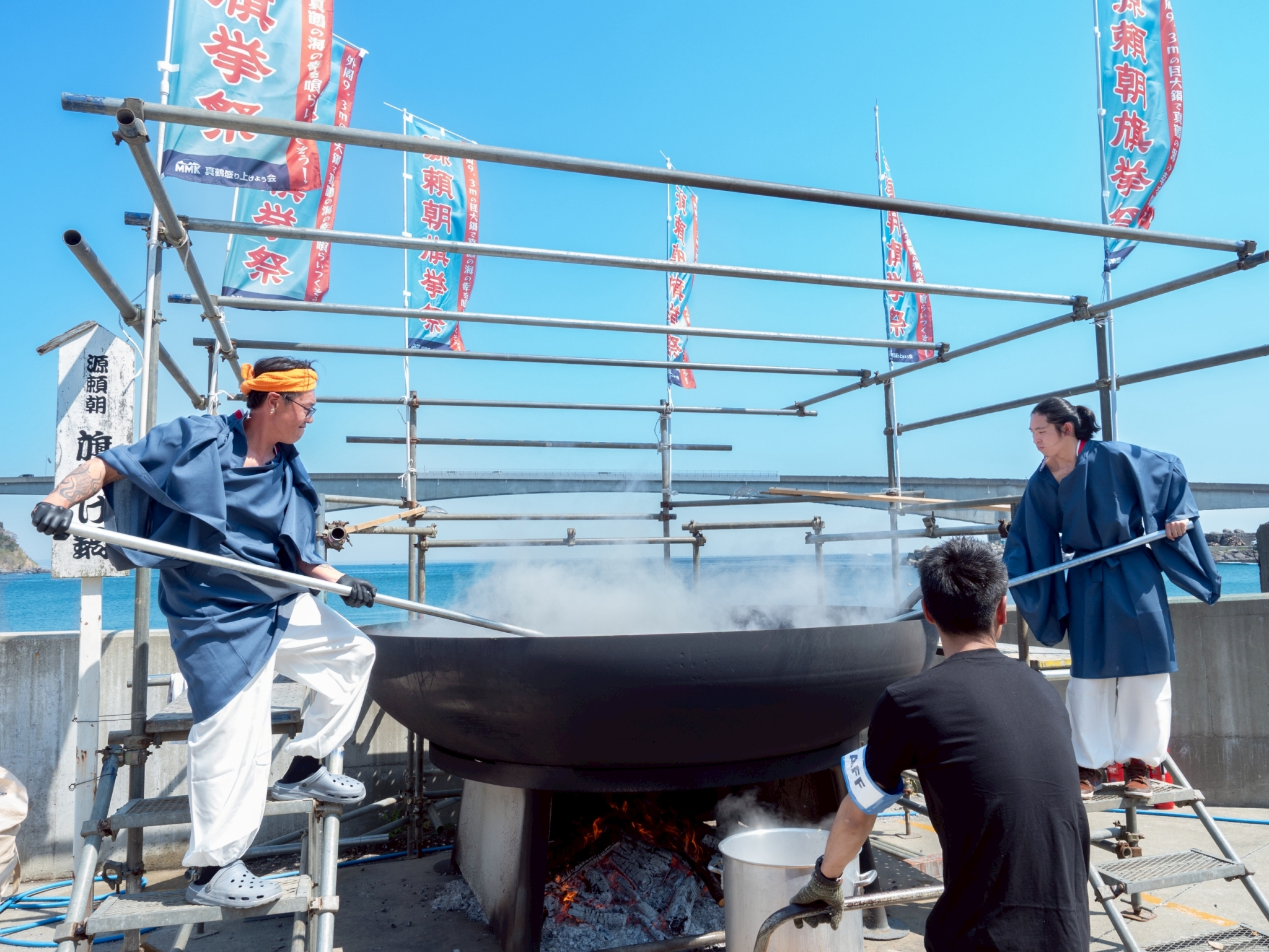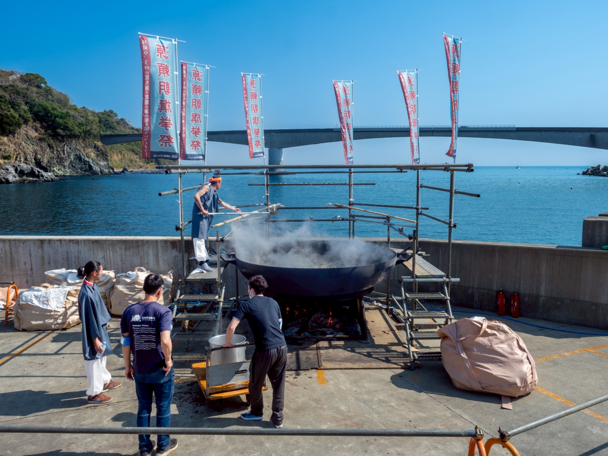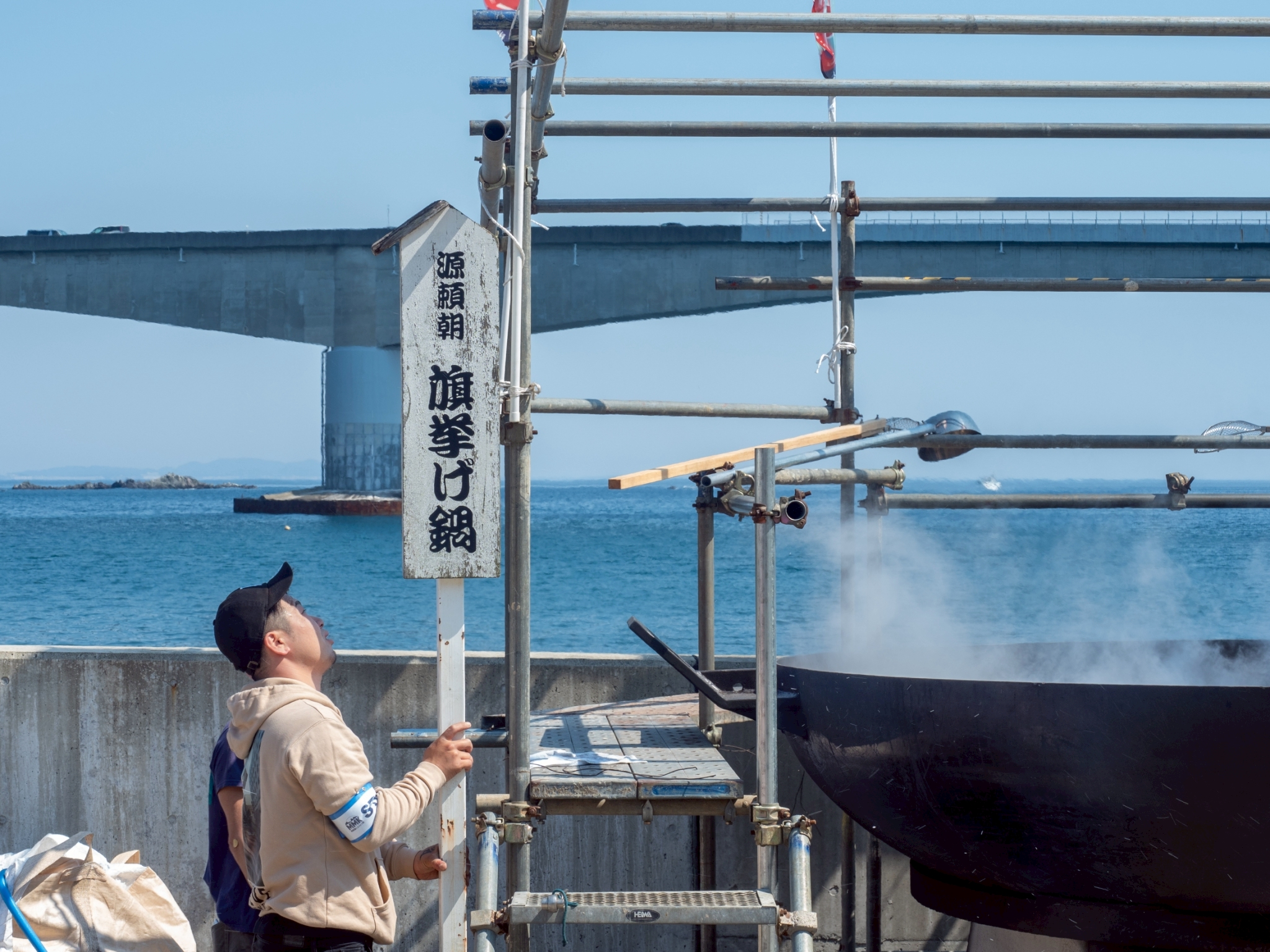 昨今の地震や気象災害の頻発化・激甚化により、災害への備えは重要性を増しています。1回の調理で真鶴町人口を超える10,000人の食事を賄うことができる頼朝鍋は、災害時の町民の食糧確保にうってつけ。海の幸、山の幸が豊富な真鶴は食材の確保にも事欠きません。源頼朝旗挙祭は、もしもの時の備えとしての「炊き出し訓練」を兼ねています。